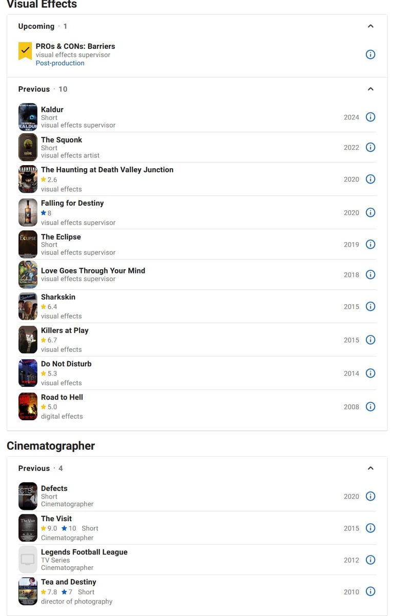 While attending UNLV during my undergraduate studies, I taught acting at a local talent agency in Las Vegas. Upon hearing complaints from several students that they were passed for roles because they didn't have an acceptable acting reel, I started a company with a mission to these help up-and-coming actors obtain material for their acting reels. We called the company Filmmata Films (2010-2020). Later I would change this branding, and mission, to Fermata Films (2023-Current). Below are some examples of these films, along with IMDB links to actors that we helped launch their career: